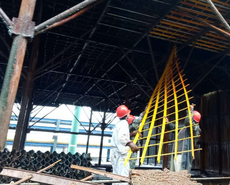 無論自身如何泥水相伴,冷卻塔上下的檢修人員你拆我接,你接我送,緊張有序、團結(jié)一致地進行著大面積的填料拆取、塔桿更換工作。
