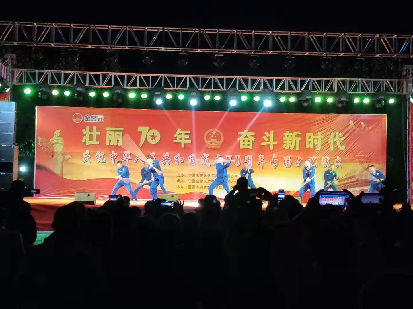在新中國成立70周年來臨之際,寧夏金昱元化工集團(tuán)舉辦此次文藝匯演活動(dòng),不僅為廣大群眾奉獻(xiàn)了一場(chǎng)精彩的視聽盛宴,表達(dá)了各族人民對(duì)黨和祖國的熱愛和美好祝愿,更激發(fā)了大家愛國愛黨的熱情,增強(qiáng)了各級(jí)群眾的凝聚力、向心力。我們滿懷赤子之心,向祖國獻(xiàn)禮,用歌聲祝福祖國繁榮昌盛,祝福明天的中國更加美好!