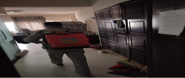 擦拭操作臺(tái)、門(mén)把手,工作的有條不紊。