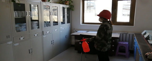 在崗位辦公室消毒。