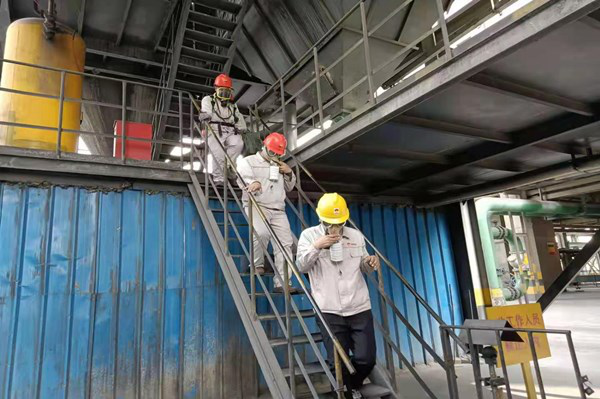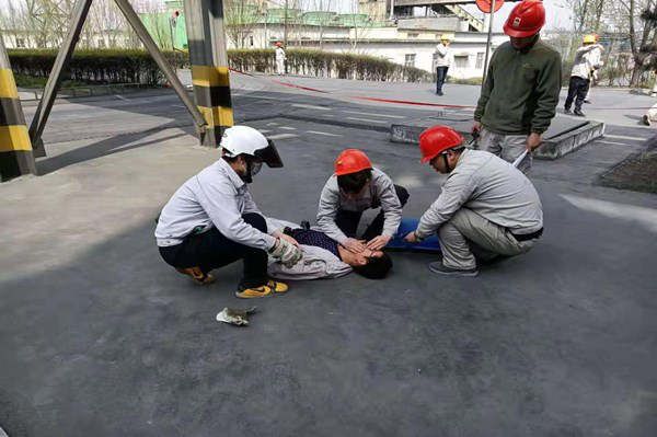 本次演練模擬以煤氣泄漏、人員中毒為方案開展的應(yīng)急救援演練,電石二裝置中控室操作人員發(fā)現(xiàn)3#凈化刮板機(jī)故障,通知兩名巡檢人員攜帶報(bào)警儀及防毒面具至現(xiàn)場檢查設(shè)備故障原因,前方行走人員至四層樓梯口處看見刮板機(jī)側(cè)板磨穿,刮板機(jī)卡住,由于未打開一氧化碳報(bào)警儀,未及時(shí)發(fā)現(xiàn)煤氣泄漏,上前查看時(shí)吸入煤氣中毒暈倒,后方協(xié)同巡檢人員發(fā)現(xiàn)后逐級(jí)進(jìn)行匯報(bào),公司迅速啟動(dòng)了應(yīng)急預(yù)案,按照預(yù)案對(duì)事故現(xiàn)場進(jìn)行了封鎖、檢查及搶修,在整個(gè)演練過程中,應(yīng)急救援的物資裝備及時(shí)到位,參加演練的各專業(yè)隊(duì)伍行動(dòng)迅速,采取的救援行動(dòng)基本恰當(dāng)。