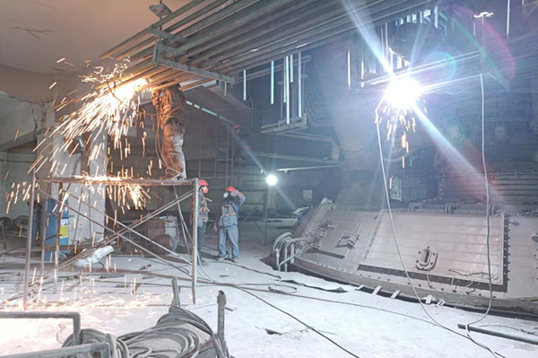 在檢修現(xiàn)場,我們的檢修工人身系安全帶,手拿焊鉗,蹲在狹小的空間,焊接水管,耗時耗力,唯有飛濺如麥穗的焊花展現(xiàn)著他們的顏色,魚骨似的焊縫是他們驕傲的成果。同時在檢修過程中也伴隨著灰塵飛揚和各種安全隱患,但在我們檢修工人的臉上沒有看見沮喪的表情,看到的是檢修工人汗水浸透的后背,沒有休憩,只有投入;看到的是檢修工人一張張布滿灰塵的臉頰,沒有怨言,只有投入。在這里你可以看到那一個個無比堅毅的目光,感受到他們內心滿滿的自信和他們愛崗敬業(yè)、無私奉獻、不畏艱辛的精神;他們攜手共進、分工合理、工作有序,只為創(chuàng)造安全的檢修環(huán)境;他們?yōu)樘崆巴瓿蓹z修任務加班到深夜,工作時間長、工作量大,不辭辛勞,沒有任何怨言,充分展現(xiàn)了“團結、拼搏”的企業(yè)精神。