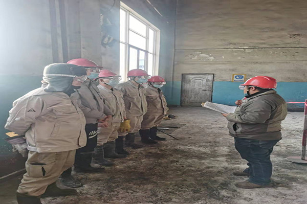 早上7:30分,只見參加檢修的維修工和操作工早已換好工作服全部抵達99%堿崗位,列隊站好聽從裝置長和安全員在檢修前安排的各自職責分工,并且對需要作業(yè)的項目進行了安全技術(shù)交底。此次檢修時間緊、任務(wù)重、勞動強度大,人員有各裝置派來協(xié)助的維修工和崗位操作工,大家齊心協(xié)力,不怕困難,一定要保質(zhì)、保量地完成所有檢修任務(wù),并做到“四不傷害”絕不能出現(xiàn)任何人身傷害事故發(fā)生。