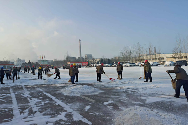 在除雪過程中,領(lǐng)導(dǎo)們始終與員工們并肩作戰(zhàn),他們不僅是指揮者,更是參與者。當(dāng)遇到積雪結(jié)冰難以清理時(shí),領(lǐng)導(dǎo)們與員工們共同商議對策,現(xiàn)場調(diào)配資源。他們親自上陣,與員工們一起喊著口號(hào),齊心協(xié)力將積雪堆攻克。