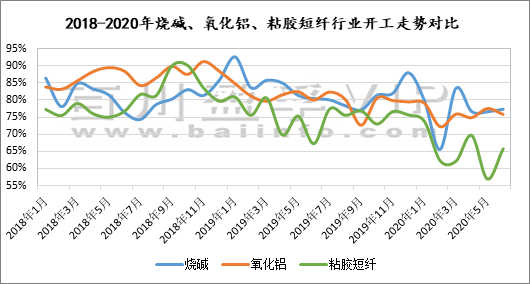 從開工率方面,根據(jù)百川統(tǒng)計(jì)數(shù)據(jù),2020年1-6月粘膠短纖平均開工率為65.1%,同比2019年1-6月平均開工率74.9%下滑13.1%;2020年1-6月氧化鋁平均開工率為75.9%,同比2019年1-6月平均開工率81.61%下滑7%。