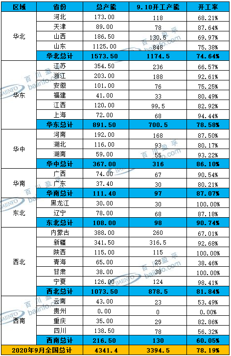 9月份中國氯堿裝置開工數(shù)據(jù)分析