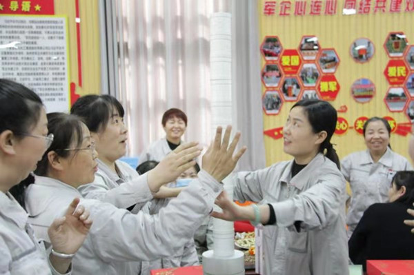 趣味文體活動(dòng)豐富多彩。女職工們?yōu)榧w榮譽(yù)踴躍參與、不甘落后,充分發(fā)揮團(tuán)隊(duì)合作精神,現(xiàn)場(chǎng)不時(shí)爆發(fā)出如雷般的掌聲,氣氛熱烈而溫馨!