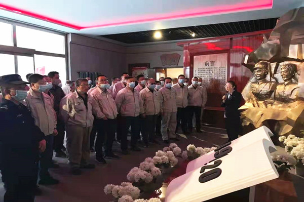 憑吊先輩英魂,傳承紅色基因;顒(dòng)中,金昱元集團(tuán)公司黨員、發(fā)展對象、積極分子舉起右手,莊嚴(yán)重溫入黨誓詞。