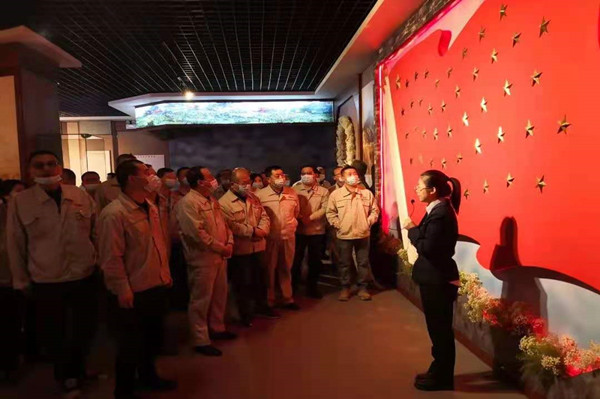 活動(dòng)結(jié)束前,大家聚集在黨旗下,鄭重公諾,表示要以昂揚(yáng)的姿態(tài)奮進(jìn)“十四五”、奮進(jìn)新征程,爭當(dāng)排頭兵,干在先,走在前;要不忘初心、牢記使命,繼承先輩遺志,讓紅色基因代代相傳,表達(dá)對革命先烈的感恩與敬仰。